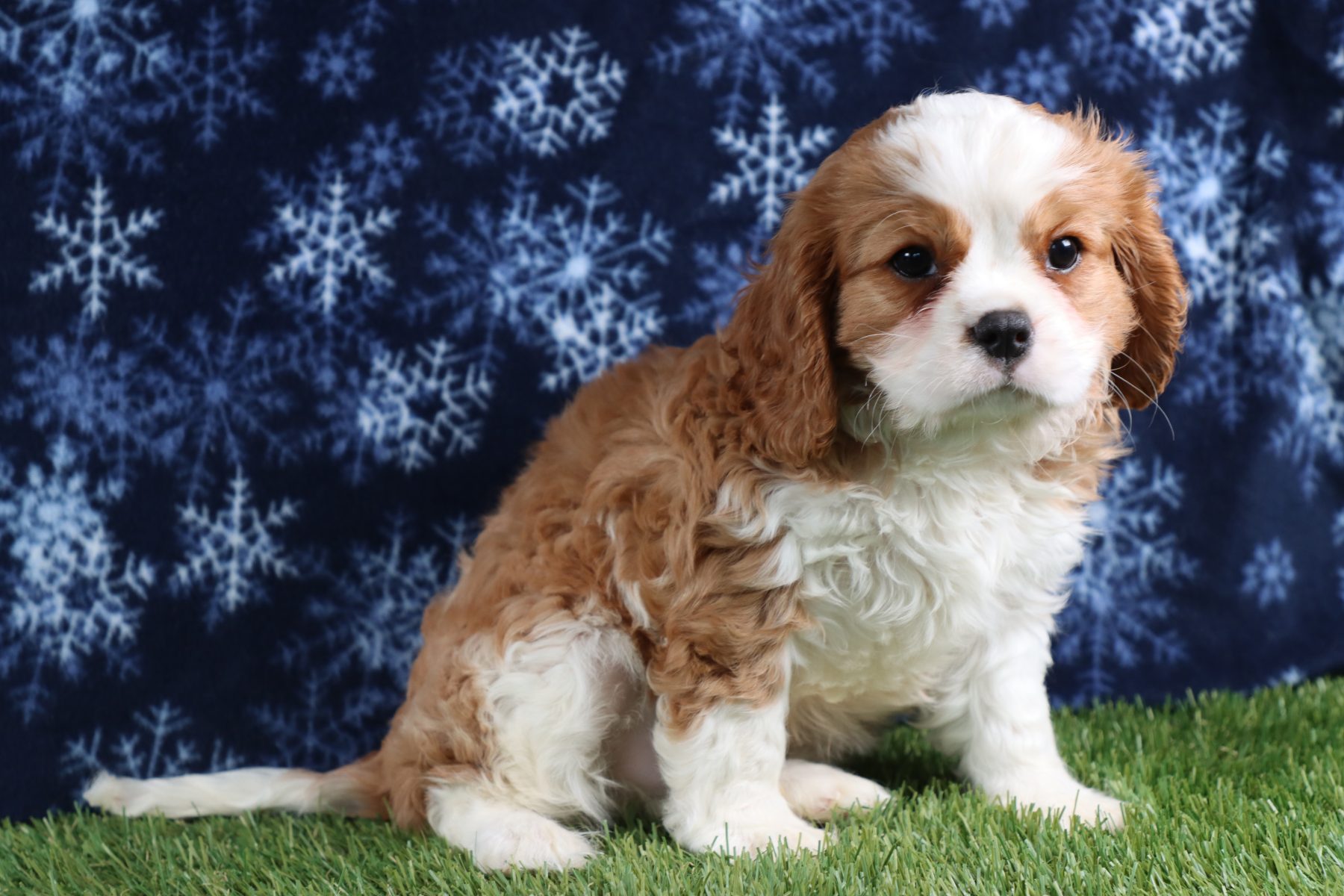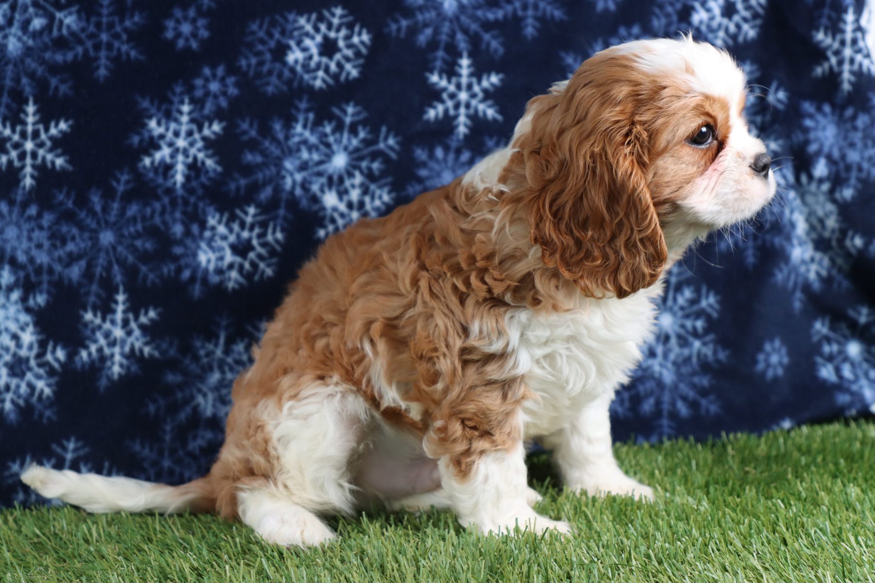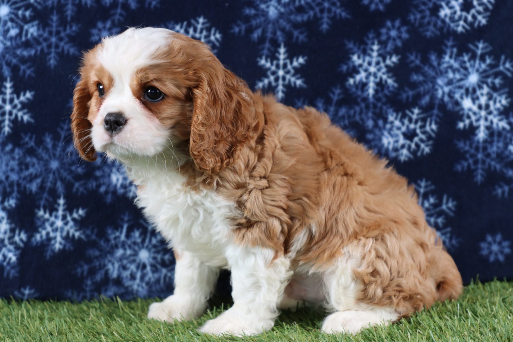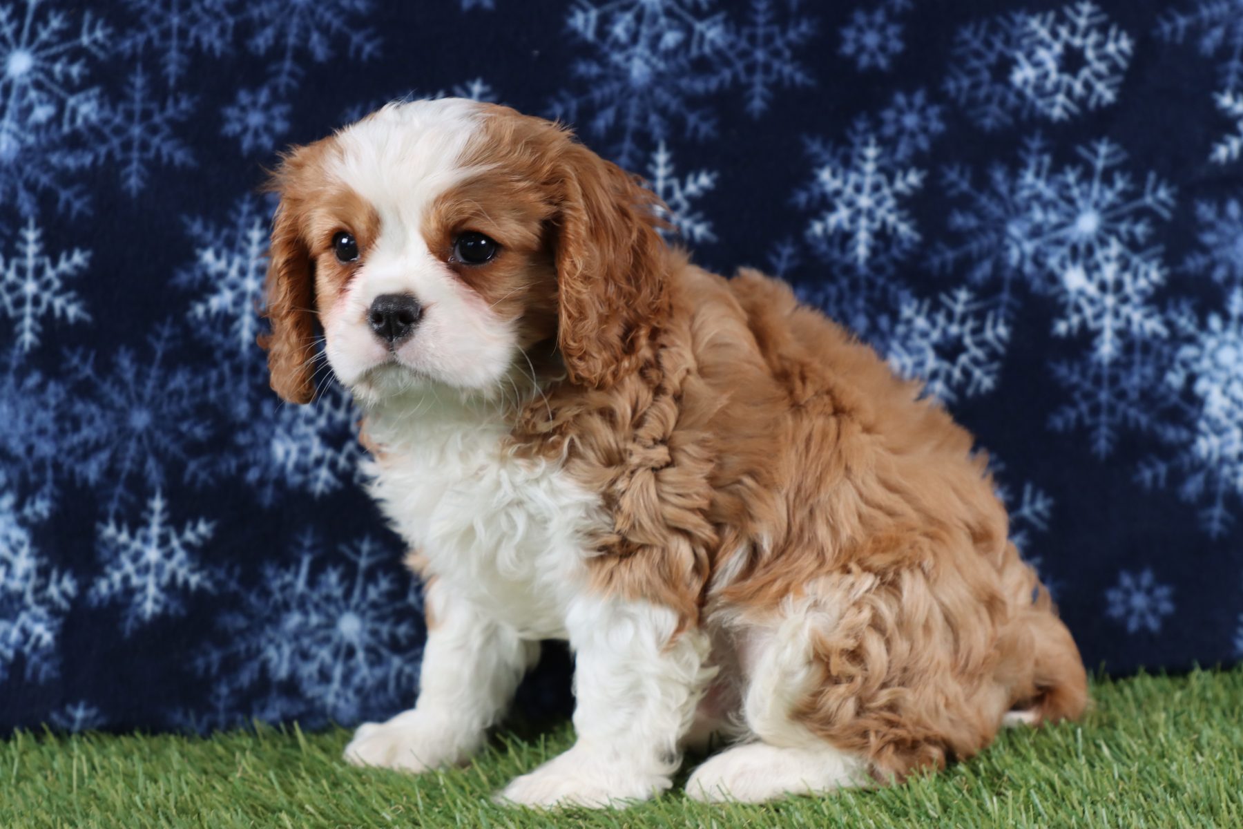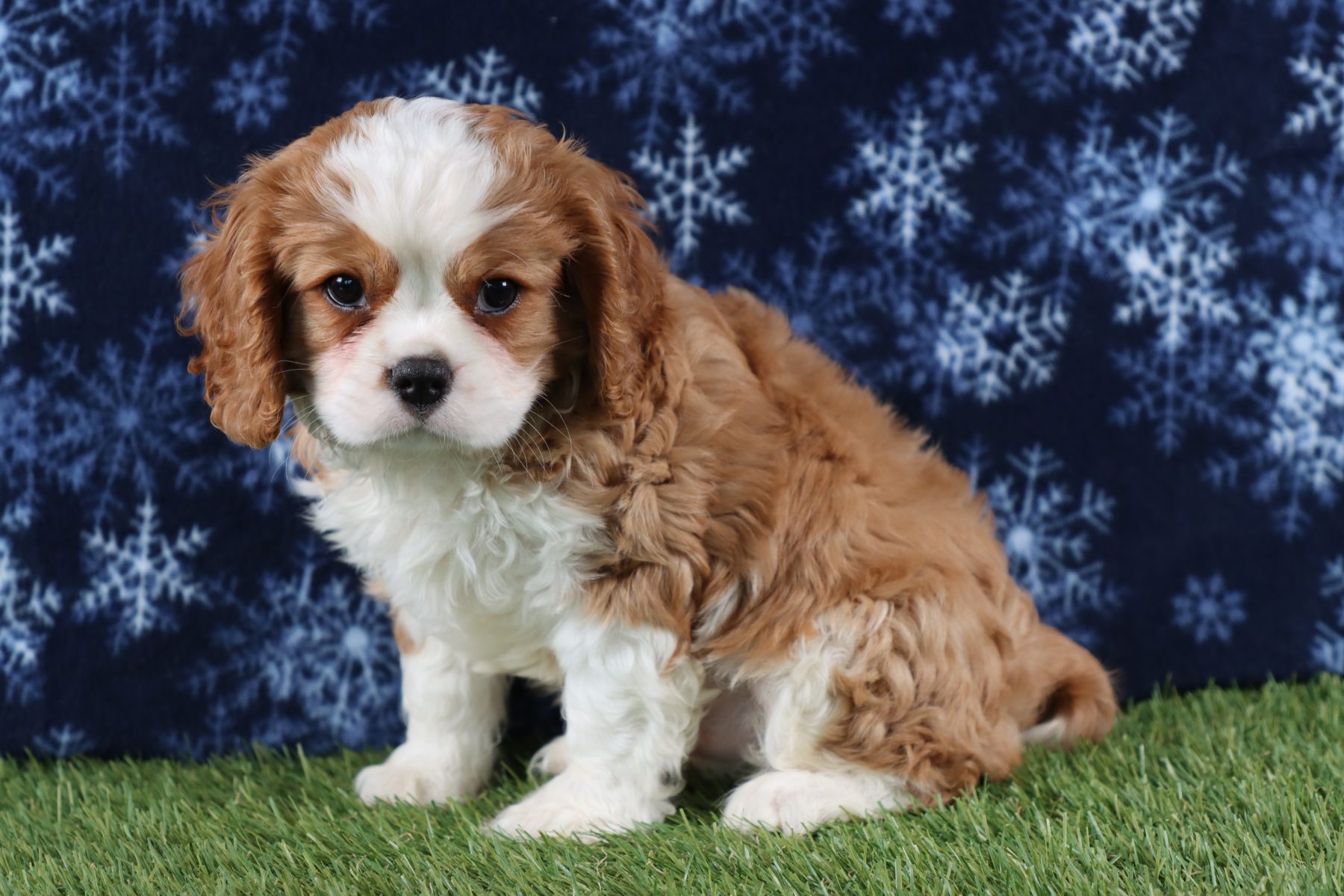 Lucas definitely missed his calling as a lifeguard or a quality control manager or even a stand in for a certain cartoon character where dramatic love and attention was smothered upon those he adored! This boy assumes the big brother role to any puppy at the Carlisle Cavalier Kennel that could use a mentor and buddy as he enjoys leading his friends or act as a little protector making sure everyone stays as safe as possible while they play! Lucas will be a natural encourager to smaller pups through sweet kisses and nudges but ideally prefers to hang with any maternal-leaning human like he’s ready to earn his first Brownie badge in excellent childcare! Our pup longs for a lap and his own safety to be created through routine and predictability so going to a home where he has experienced dog owners who know the fine line between spoiling rotten and providing consistent structure will be a must! If you are looking for a little puppy prince who has a theatrical flair and a big heart- Lucas is ready to be your leading man!